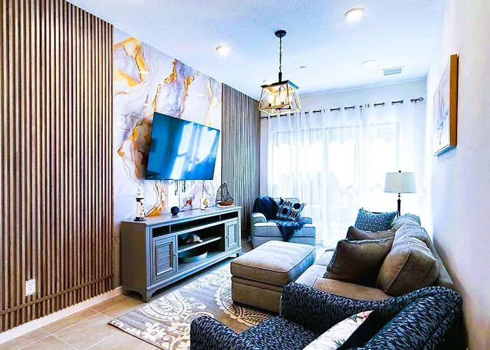 10466Th Luxury At Paradisogrande Orlando villa biedt een overdekt zwembad voor een ontspannen ervaring en bevindt zich op 7 km afstand van het Volcano Bay waterpark. Het vakantiehuis biedt gasten draadloos internet en privé-autoparkeren, en ligt op ongeveer 10 minuten rijden van de iFLY Orlando.